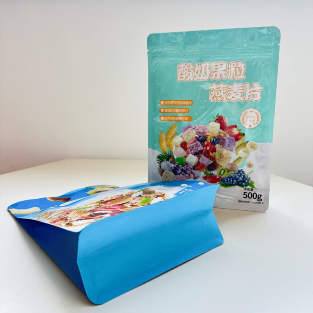 1. Constructed from three-layer laminated materials, featuring a matte BOPP surface and aluminum foil.
