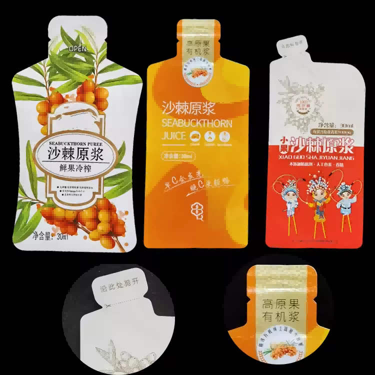 Fresh Juice Puree Packaging Bag Sea Buckthorn Prickly Pear Puree Packaging Standing Ziplock Mylar Bag |
