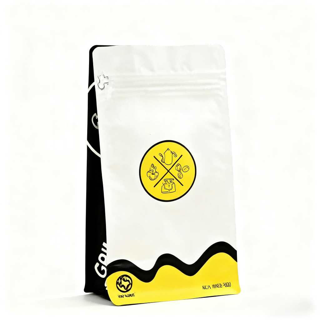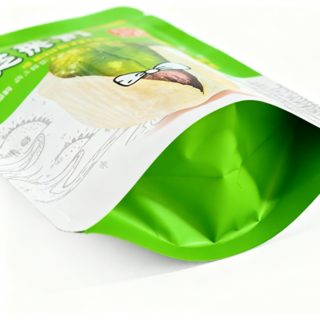 1. Constructed from three-layer laminated materials, featuring a matte BOPP surface and aluminum foil.